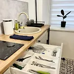 La presencia de una cocina completa completa con un hervidor eléctrico, nevera y utensilios de cocina permite a los huéspedes preparar sus propias comidas. El restaurante SuVide sirve platos de cocina italiana y se encuentra a alrededor de 600 metros de este apartamento. Se tardan 15 minutos en coche en llegar al aeropuerto internacional de Riga.